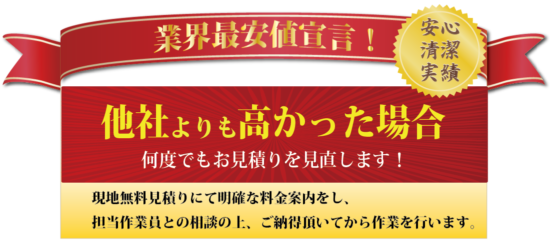 ※見積金額以上の請求は一切ございませんのでご安心下さい。また、後日追加請求などといったこともございません。